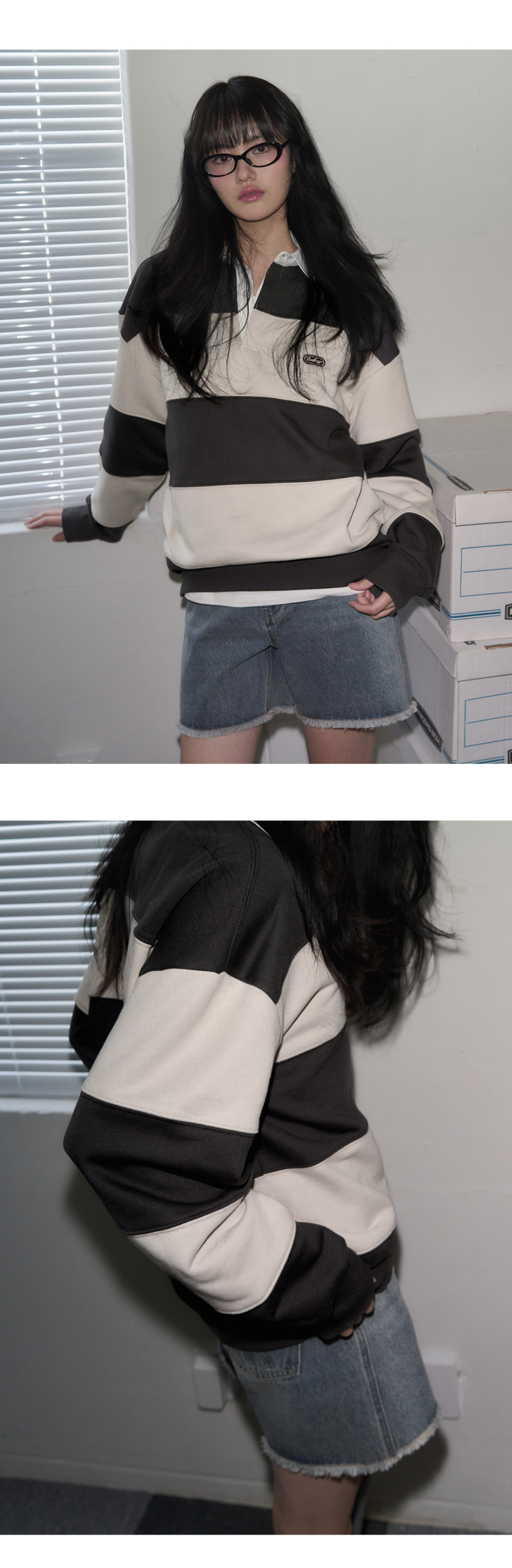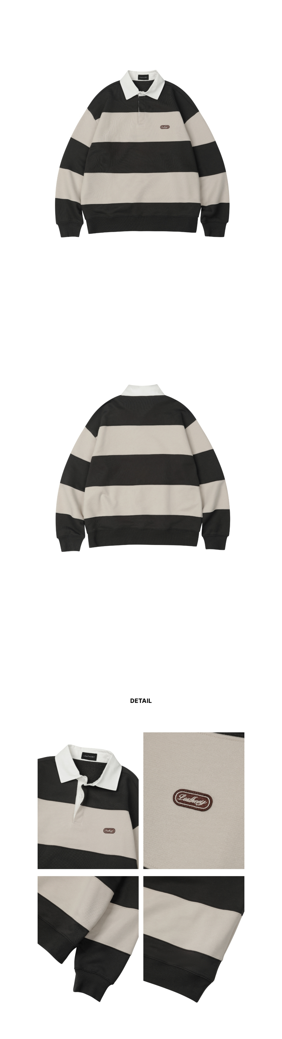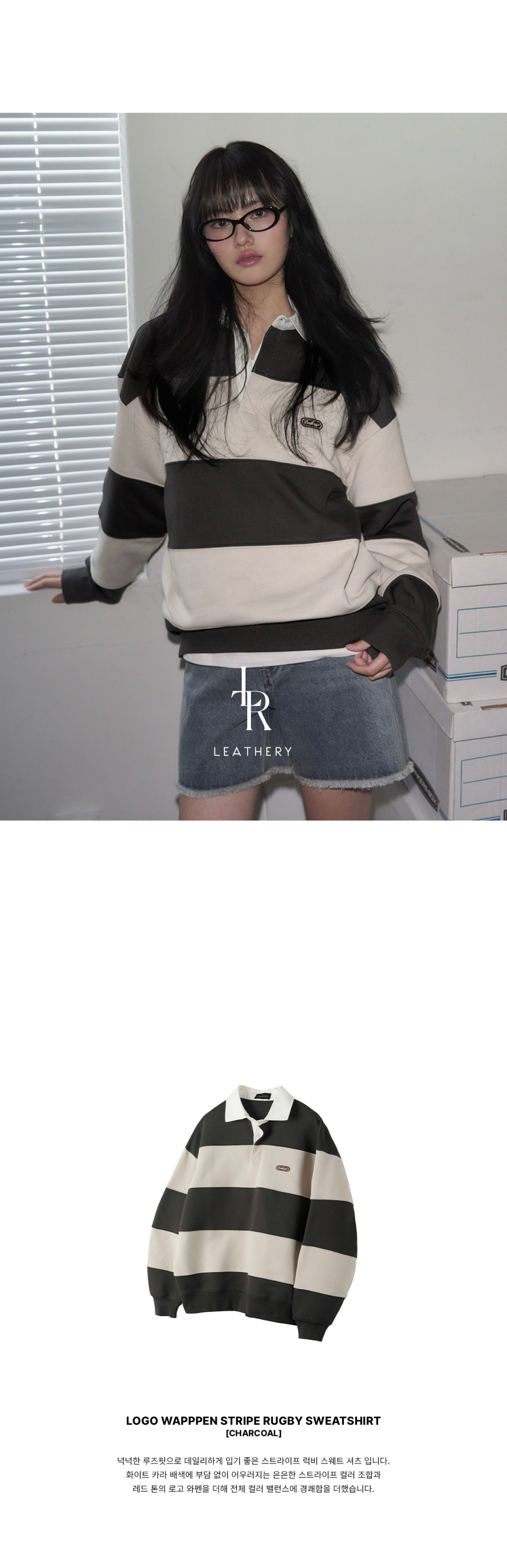 로고 와펜 스트라이프 럭비 스웨트 셔츠 [CHARCOAL]
