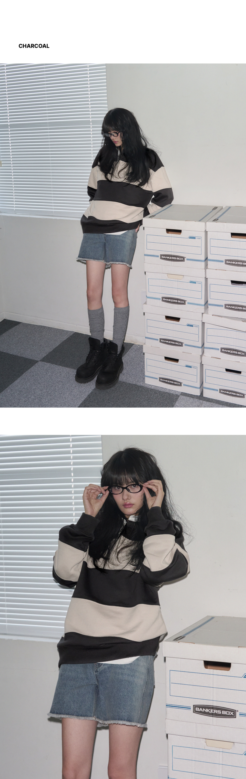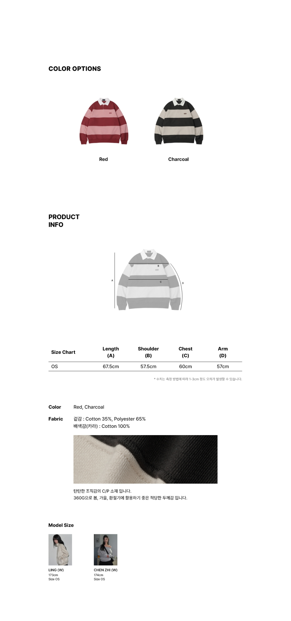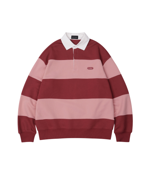 로고 와펜 스트라이프 럭비 스웨트 셔츠 [CHARCOAL]