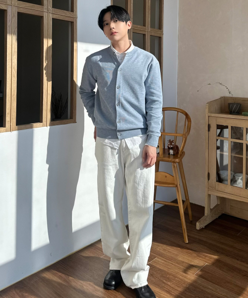 워셔블 린넨 라이크 라운드 세미 오버핏 가디건 - 3color