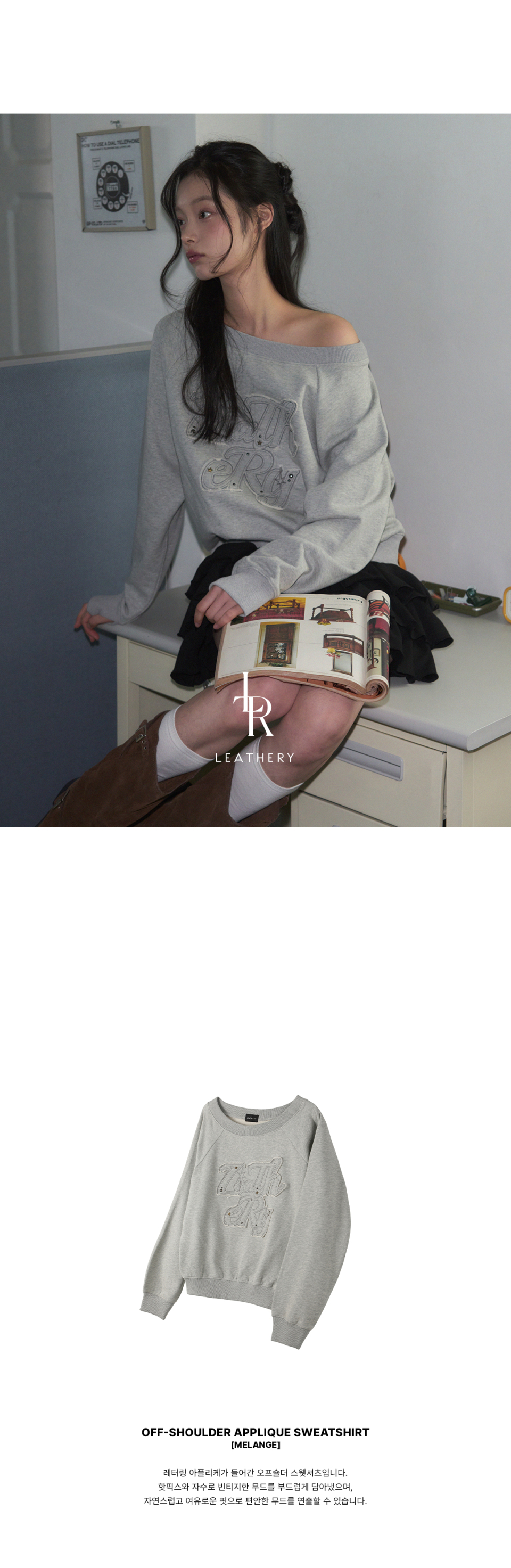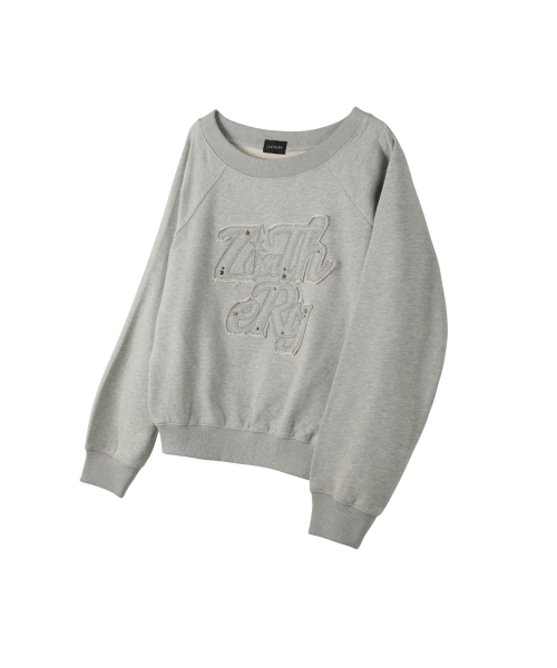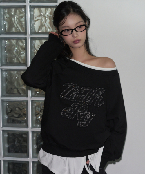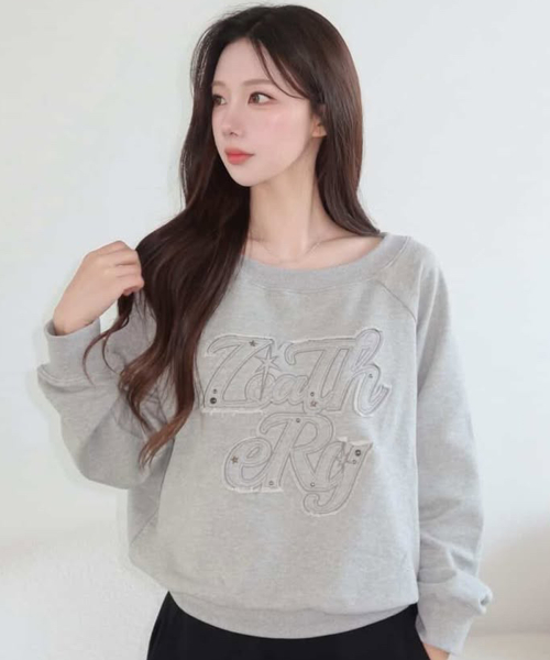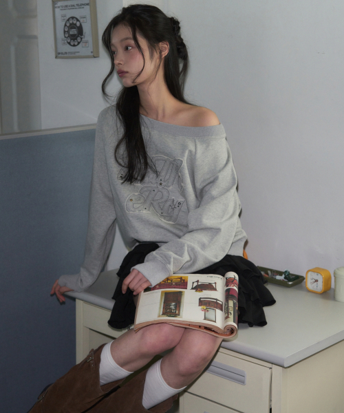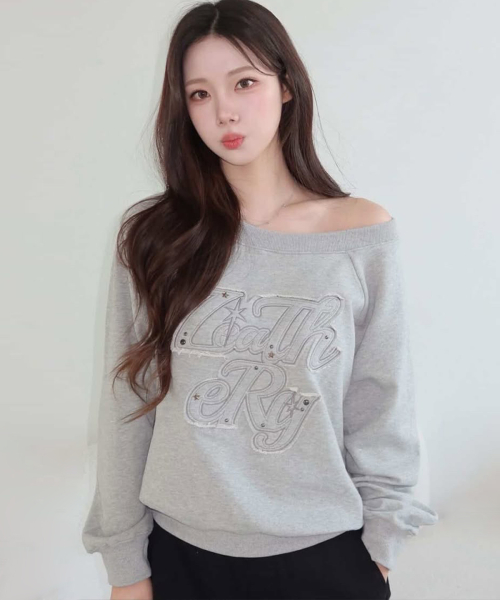 오프숄더 아플리케 스웻셔츠 [MELANGE]