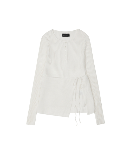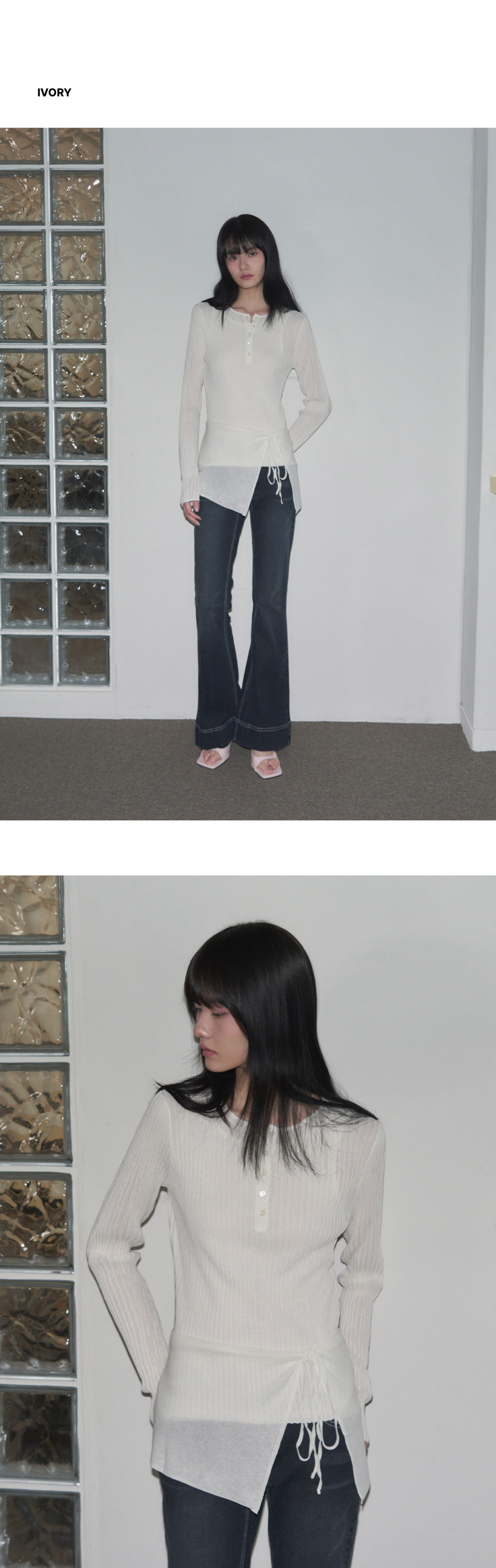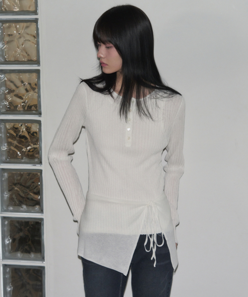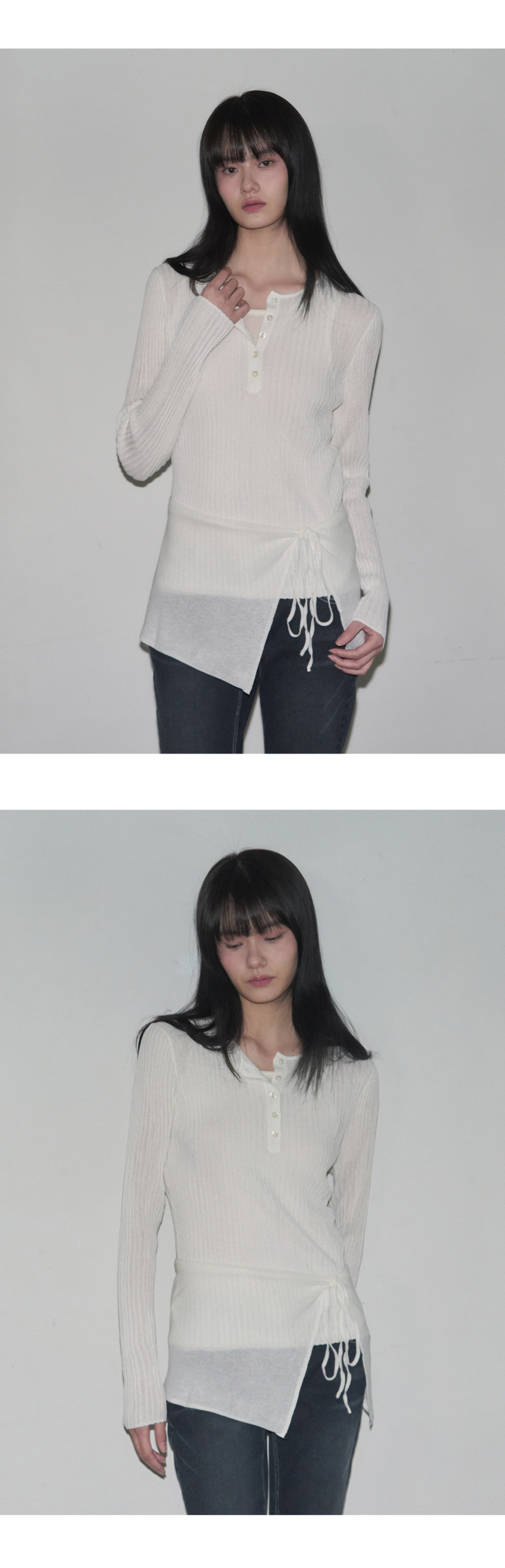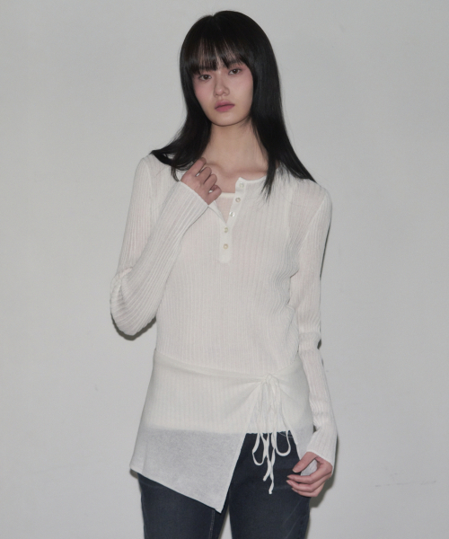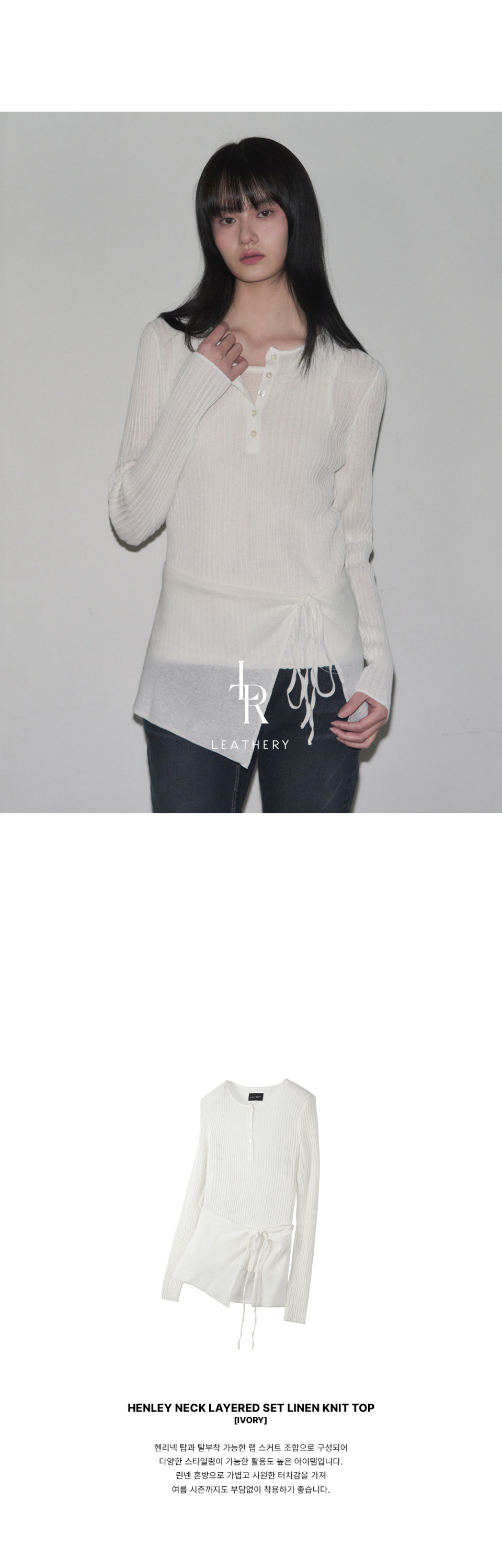 헨리넥 레이어드 세트 린넨 니트 탑 [IVORY]