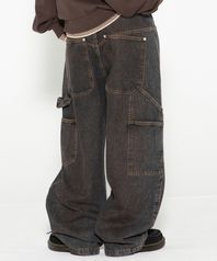 XP323 머드 워싱 카펜터 배기 데님 팬츠 (BLACK)