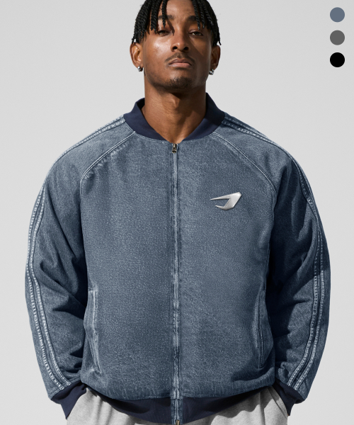 [서강준 PICK] 핀 스트라이프 크롭 블루종 자켓 [DARK NAVY]