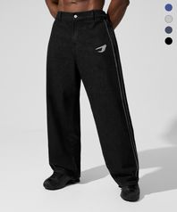 TPU 로고 트랙 라인 와이드 데님 팬츠_블랙
