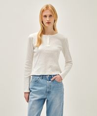 W FLOWER PATTERN LONG SLEEVE TEE ivory