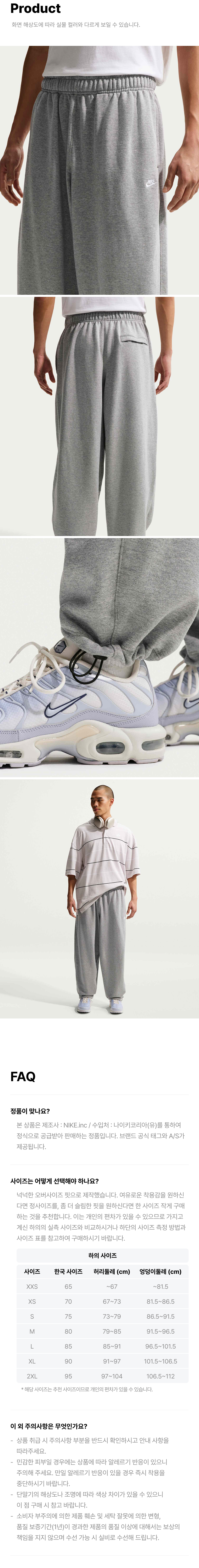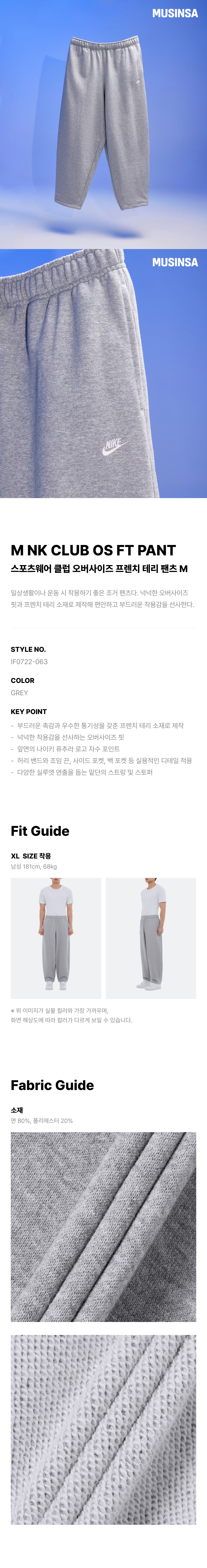 스포츠웨어 클럽 오버사이즈 프렌치 테리 팬츠 M - 다크 그레이 헤더:라이트 스모크 그레이:화이트 / IF0722-063