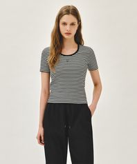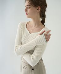 하트 넥 골지 슬림 니트 탑 [IVORY]