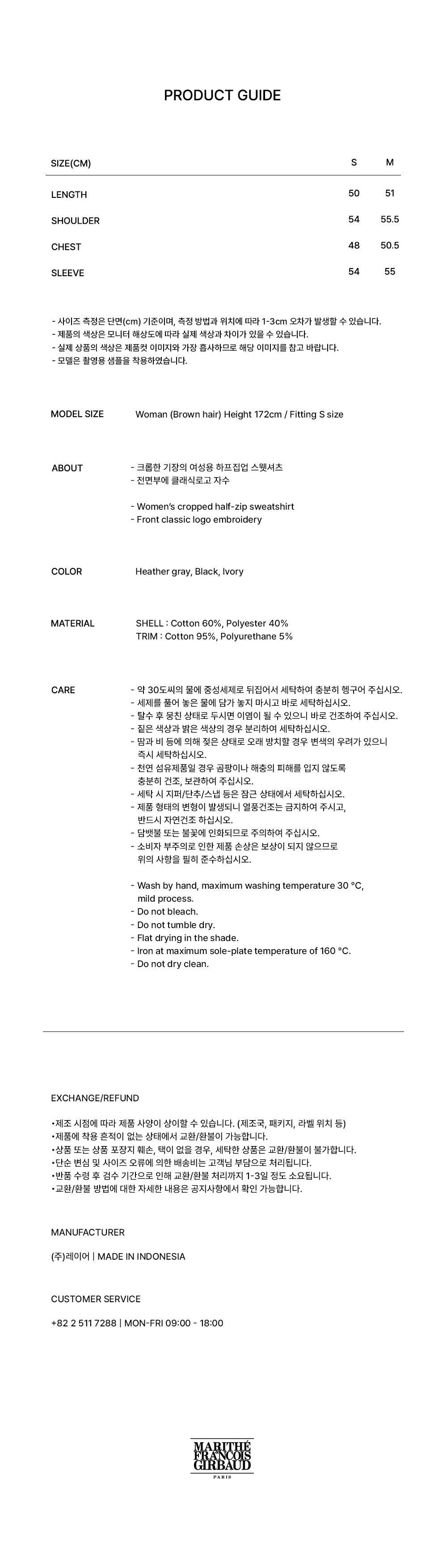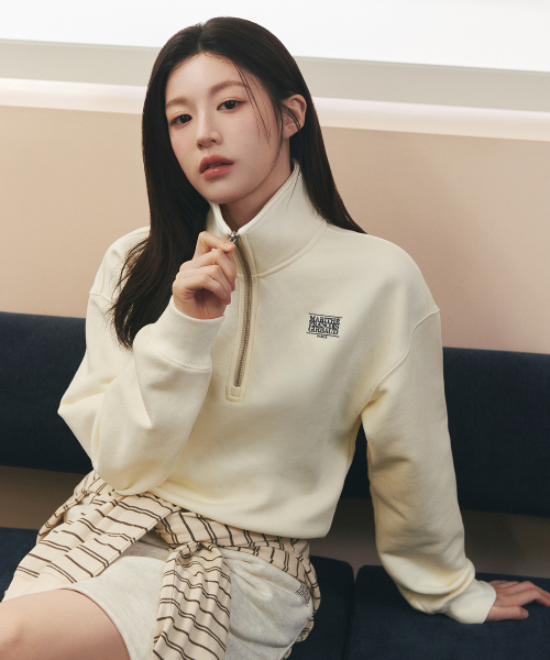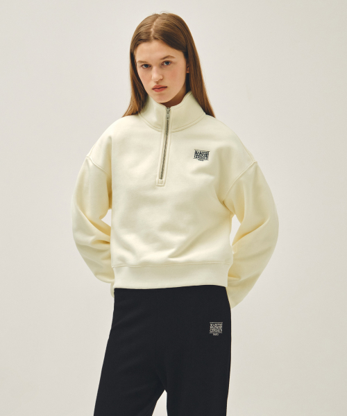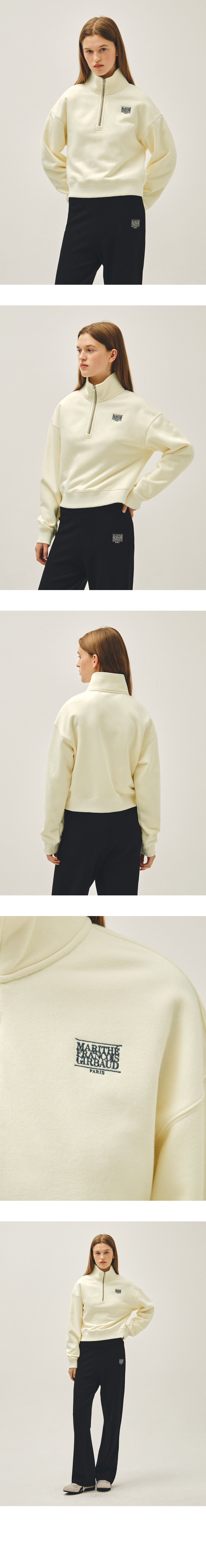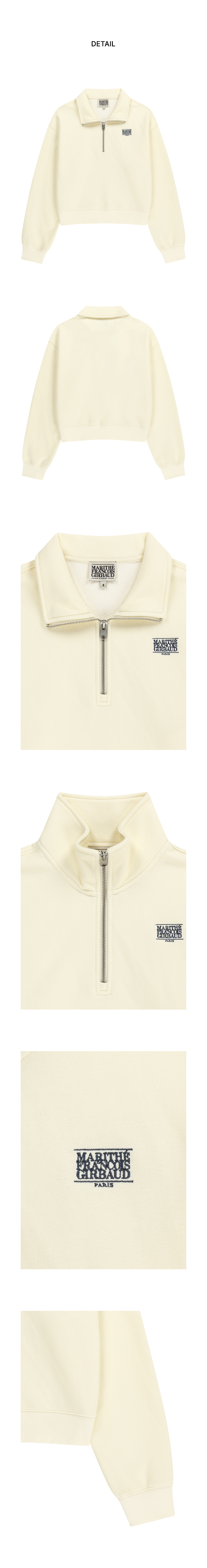 W SMALL CLASSIC LOGO HALF ZIPUP CROP SWEATSHIRT ivory