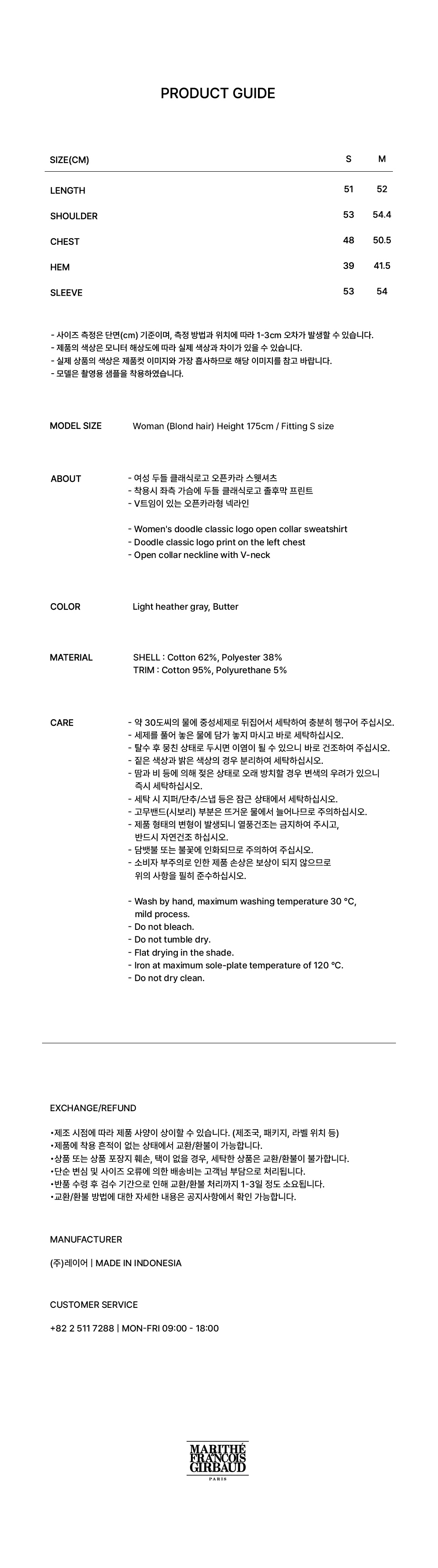 W DOODLE CLASSIC LOGO COLLAR SWEATSHIRT light heather gray