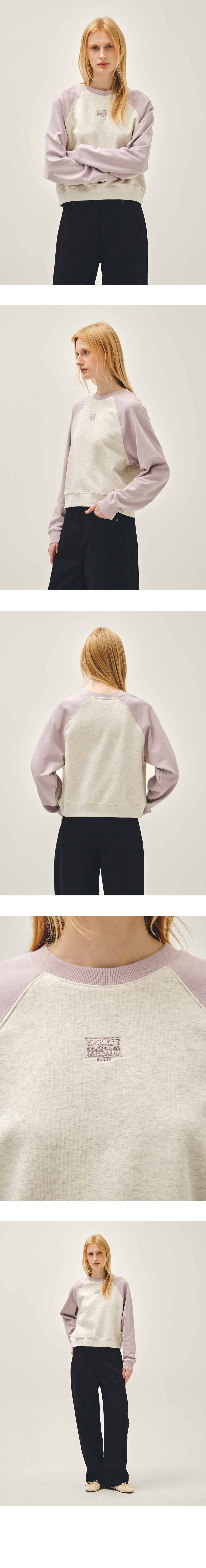 W BLOCK CLASSIC LOGO RAGLAN CROP SWEATSHIRT light purple