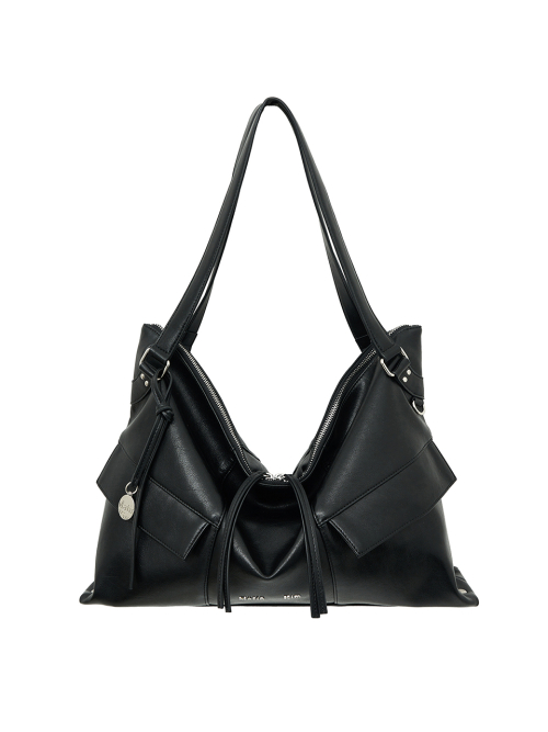 양옆 포켓과 마뗑킴 원형장식의 참이 포인트인 와이드한 기장감의 빅숄더백