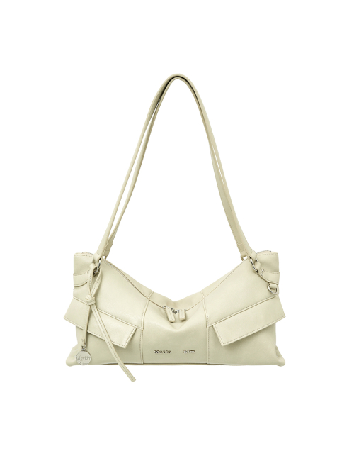 양옆 포켓과 마뗑킴 원형장식의 참이 포인트인 와이드한 기장감의 숄더백