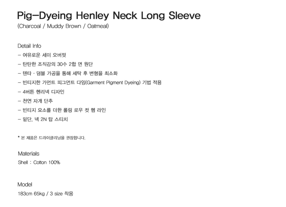 피그다잉 헨리넥 롱 슬리브 (오트밀)