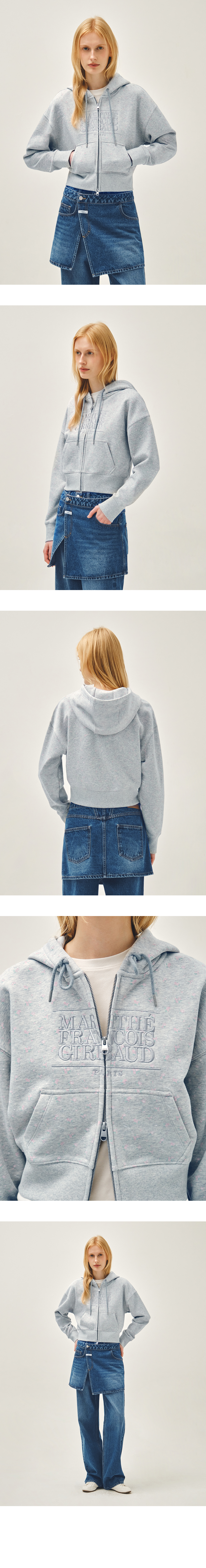 W CLASSIC LOGO CROP HOODIE ZIPUP heather gray