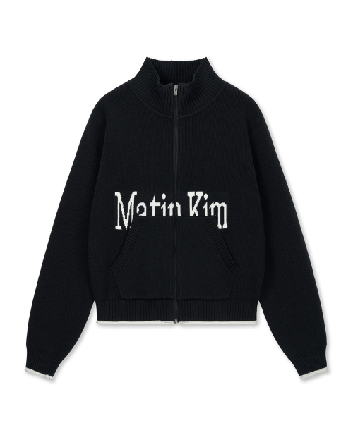 앞판 로고 포인트에 포켓을 더한 니트 집업