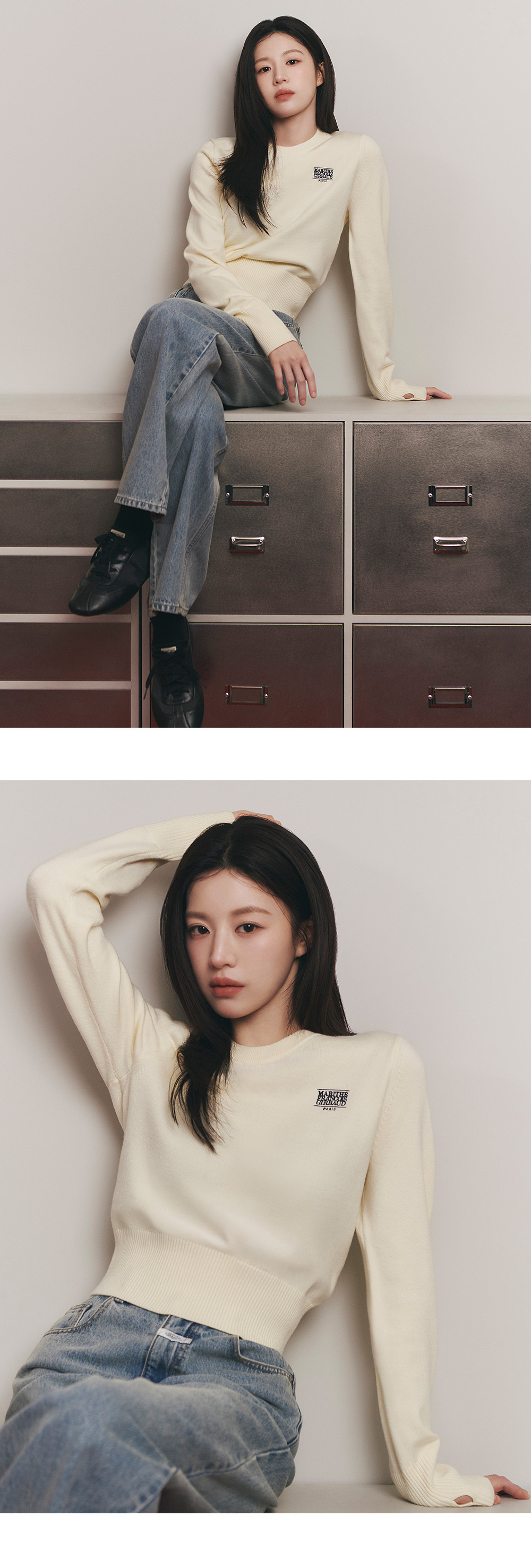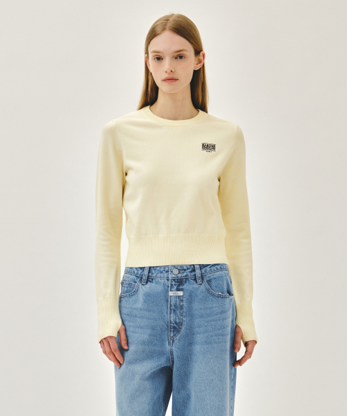 W SMALL CLASSIC LOGO CROP KNIT PULLOVER ivory