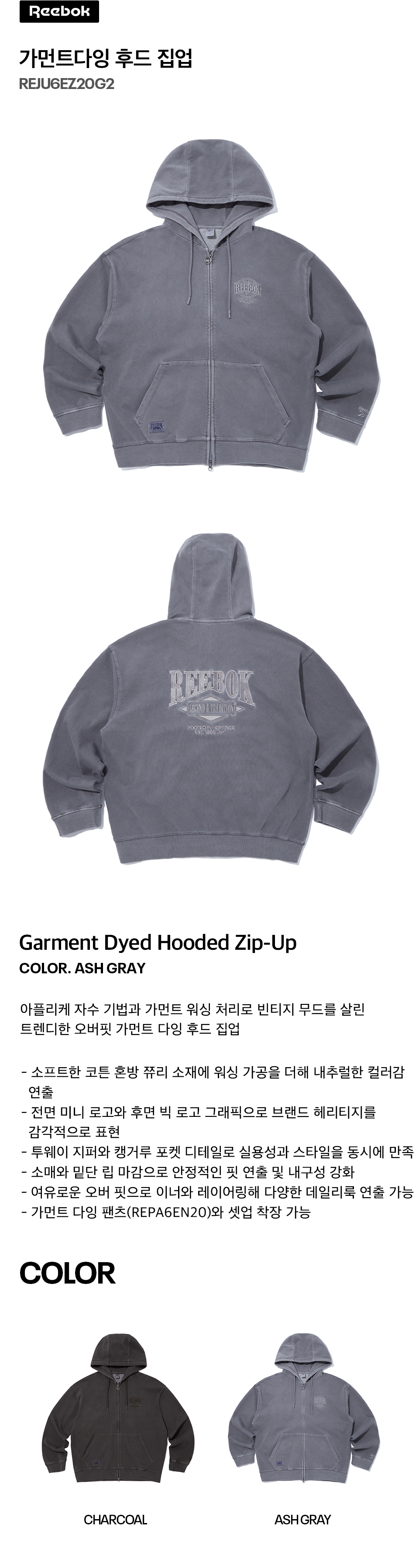 가먼트다잉 후드 집업 - 애쉬 그레이