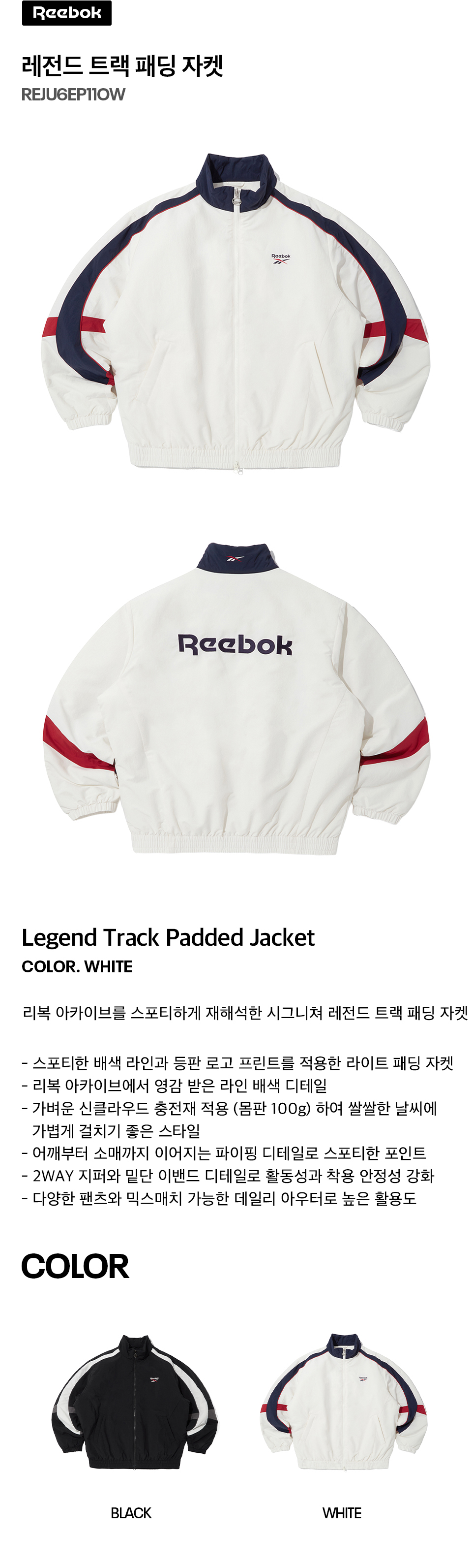 레전드 트랙 패딩 자켓 - 화이트