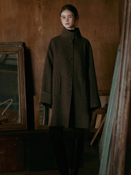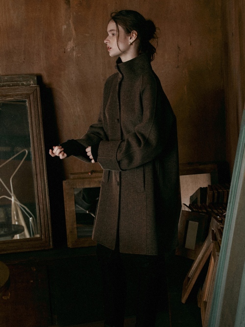 MORI herringbone handmade half coat_BROWN