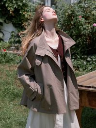 BAYLIN cape trench coat_KHAKI GRAY