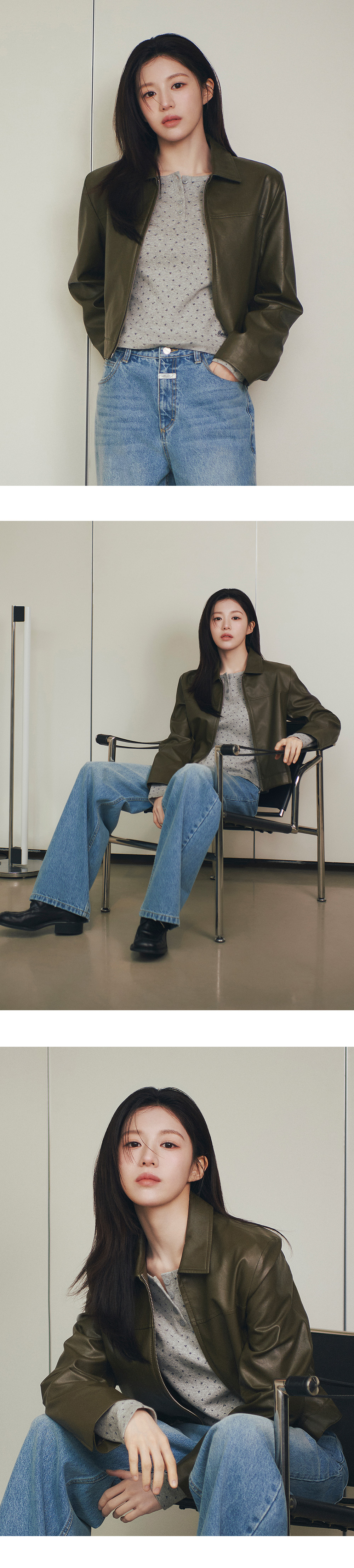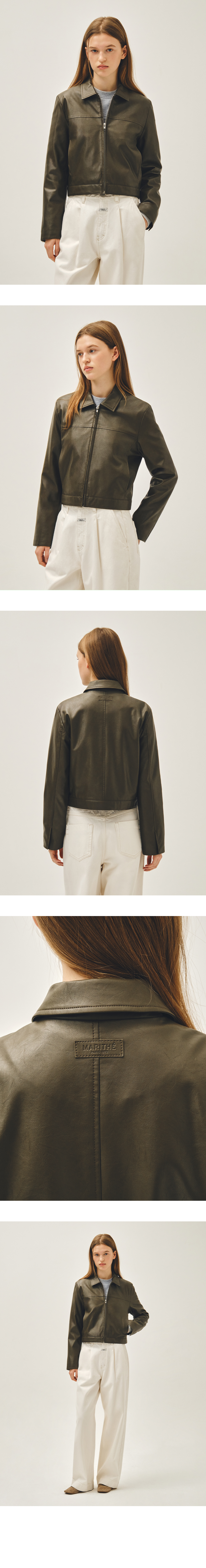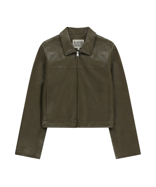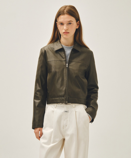 W CROP FAUX LEATHER JACKET khaki