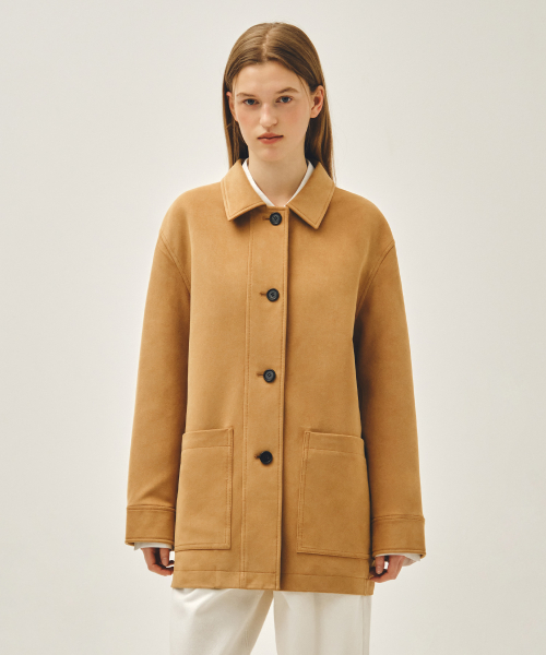 W FAUX SUEDE COLLAR JACKET camel