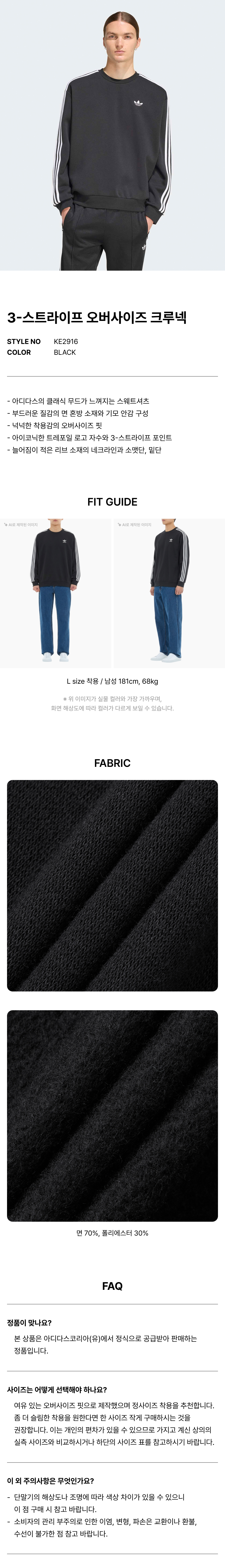 3-스트라이프 오버사이즈 크루넥 - 블랙 / KE2916
