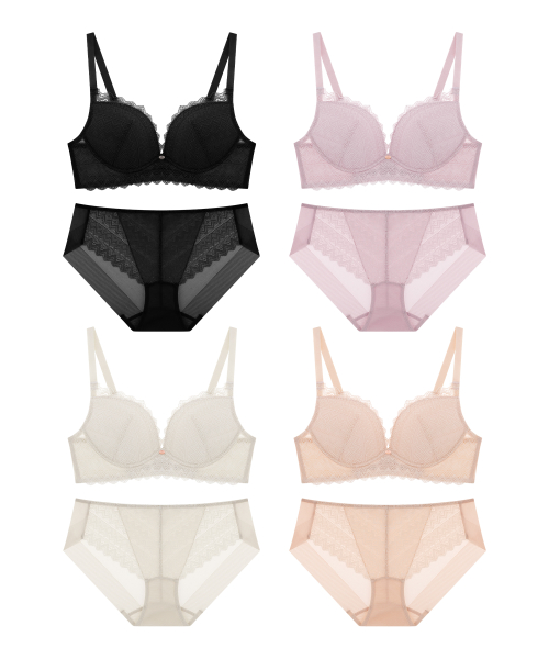 [4PACK] 로맨틱 레이스 노와이어 브라팬티 세트