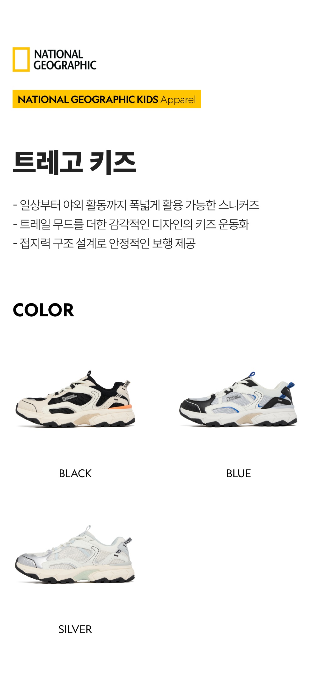 내셔널지오그래픽 키즈(NATIONAL GEOGRAPHIC KIDS)는 적극적으로 자신을 표현하며 가치 소비를 추구하는 여러분을 위해 의류, 캐리어, 백팩, 캠핑 등 700여 가지가 넘는 다양한 제품을 제안하는 내셔널지오그래픽(NATIONAL GEOGRAPHIC)의 키즈 라인입니다.