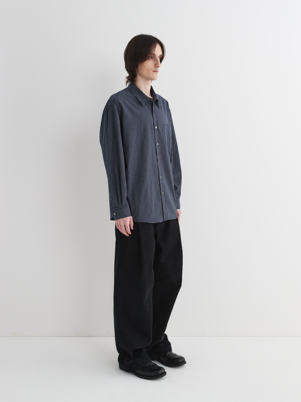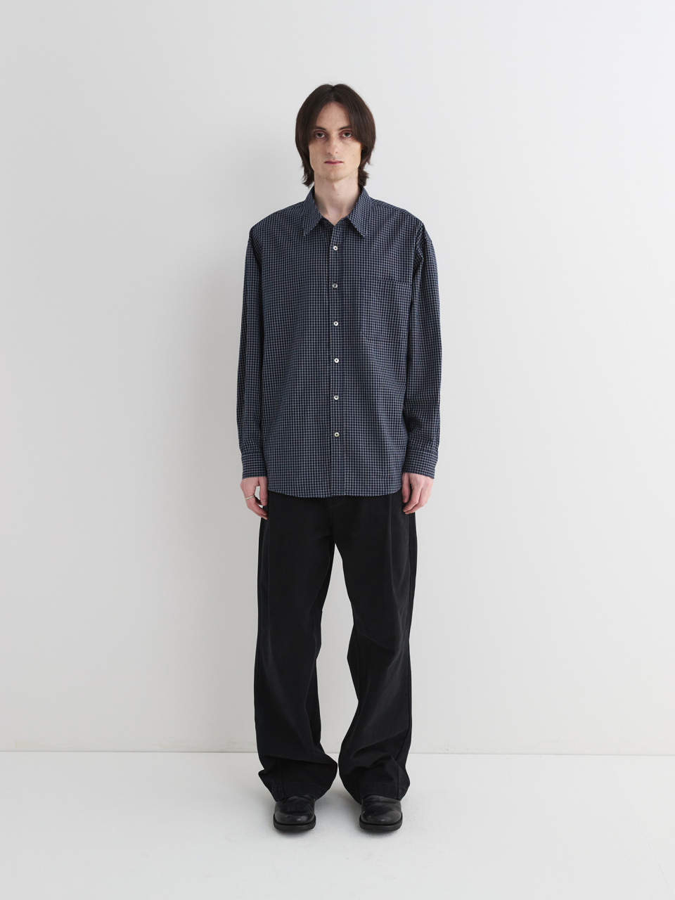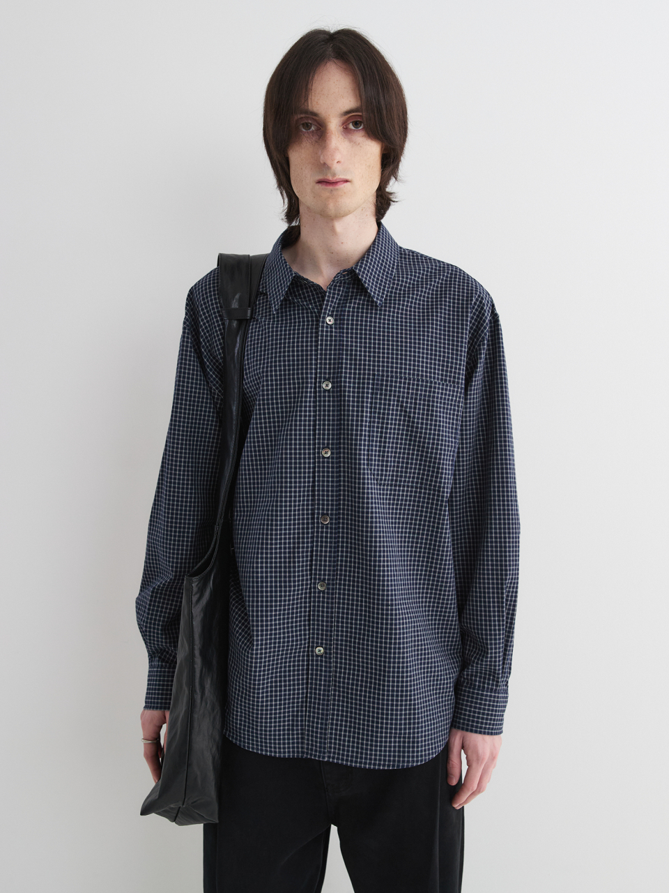 아키마 체크 셔츠 (네이비)