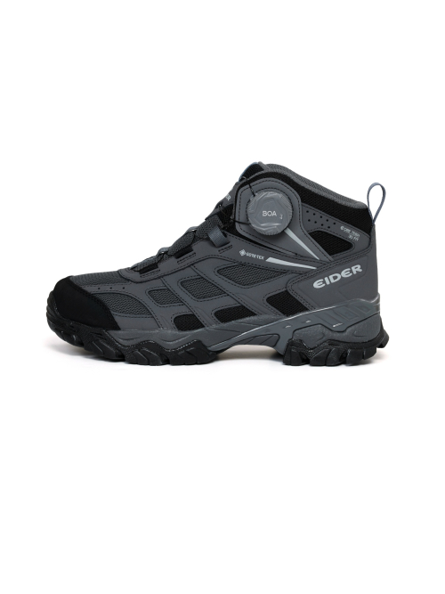 ㆍ발목을 잡아주는 미드컷 구조에 BOA 다이얼을 더해 빠르고 정확한 피팅, 산악 지형에서의 안정감을 극대화 ㆍ토캡·사이드월 보강으로 보호 기능을 확보하여 안정적인 트레킹 활동에 적합한 미드컷 스타일 ㆍ입체적 구조의 아웃솔로 미끄러운 산길에서도 뛰어난 접지력 제공 ㆍ무게 - 454g (260mm 0.5족)