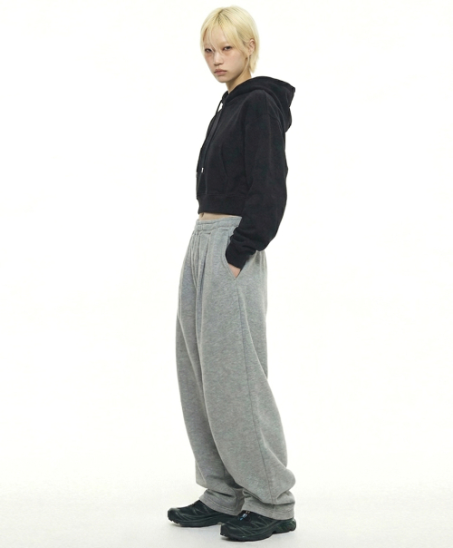 베이직 오버사이즈 볼륨 크롭 후디집업 그레이