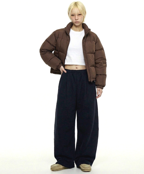 시그니처 셔링 코튼 바이커 자켓 - CHARCOAL