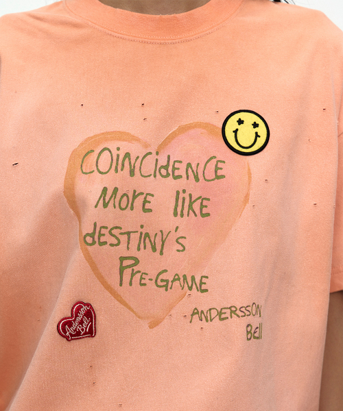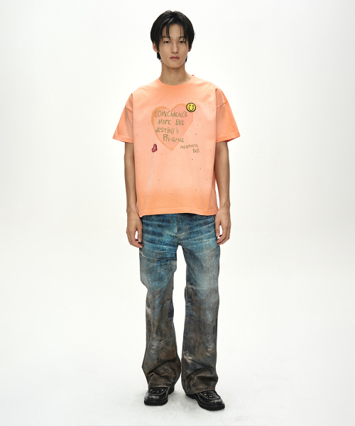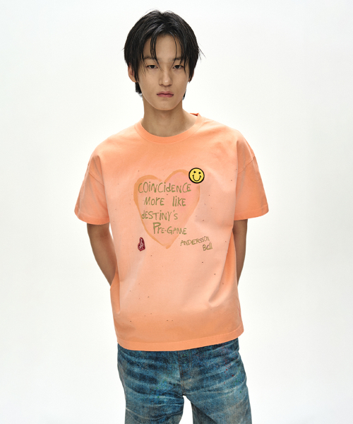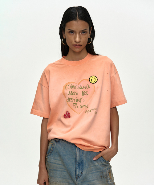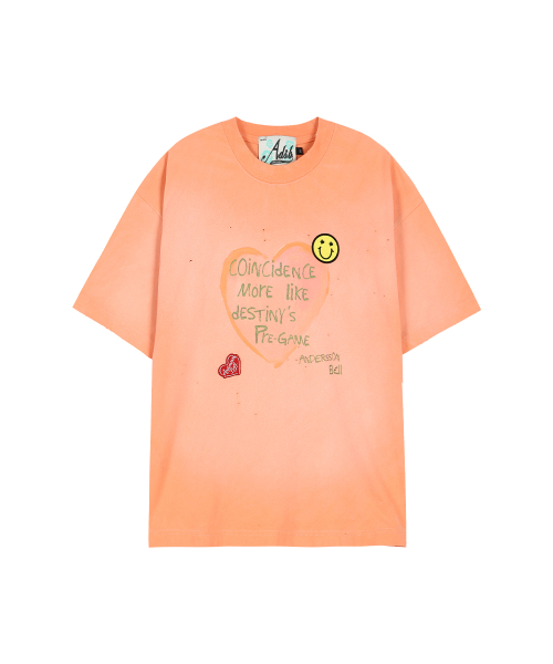 (ESSENTIAL) UNISEX SPRAY WASHED HEART MESSAGE T-SHIRT atb1432u(ORANGE)