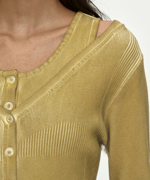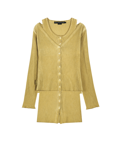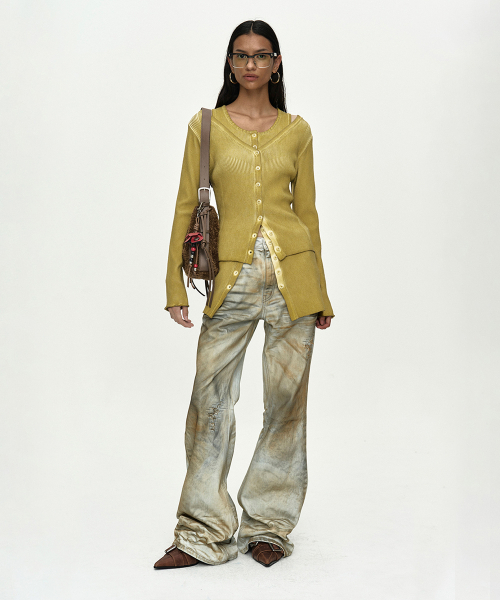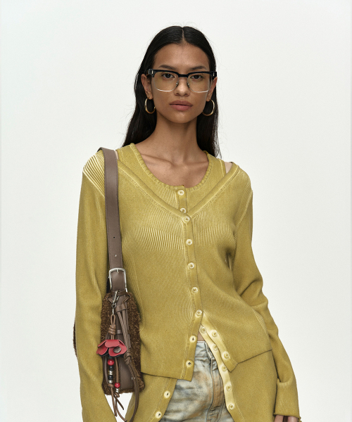 VINTAGE-DYE LAYERED KNIT CARDIGAN atb1470w(MARIGOLD)