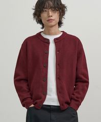 미니멀 버튼 라운드넥 크롭 가디건 (DARK RED)