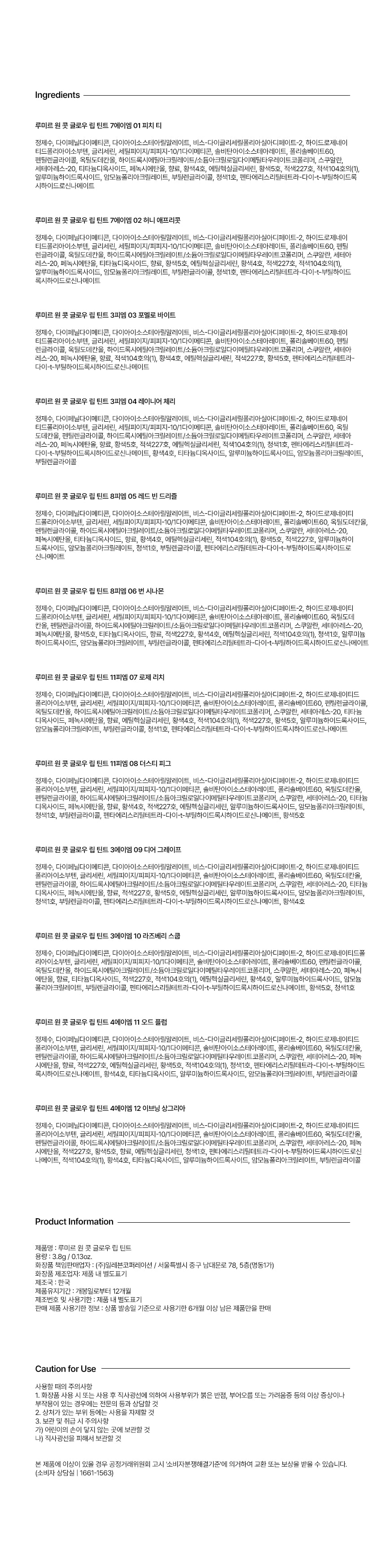 [2SET]원 콧 글로우 립 틴트(12colors)