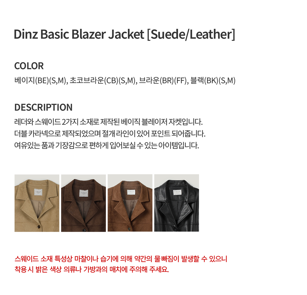 딘즈 베이직 블레이저 자켓 [스웨이드/레더]