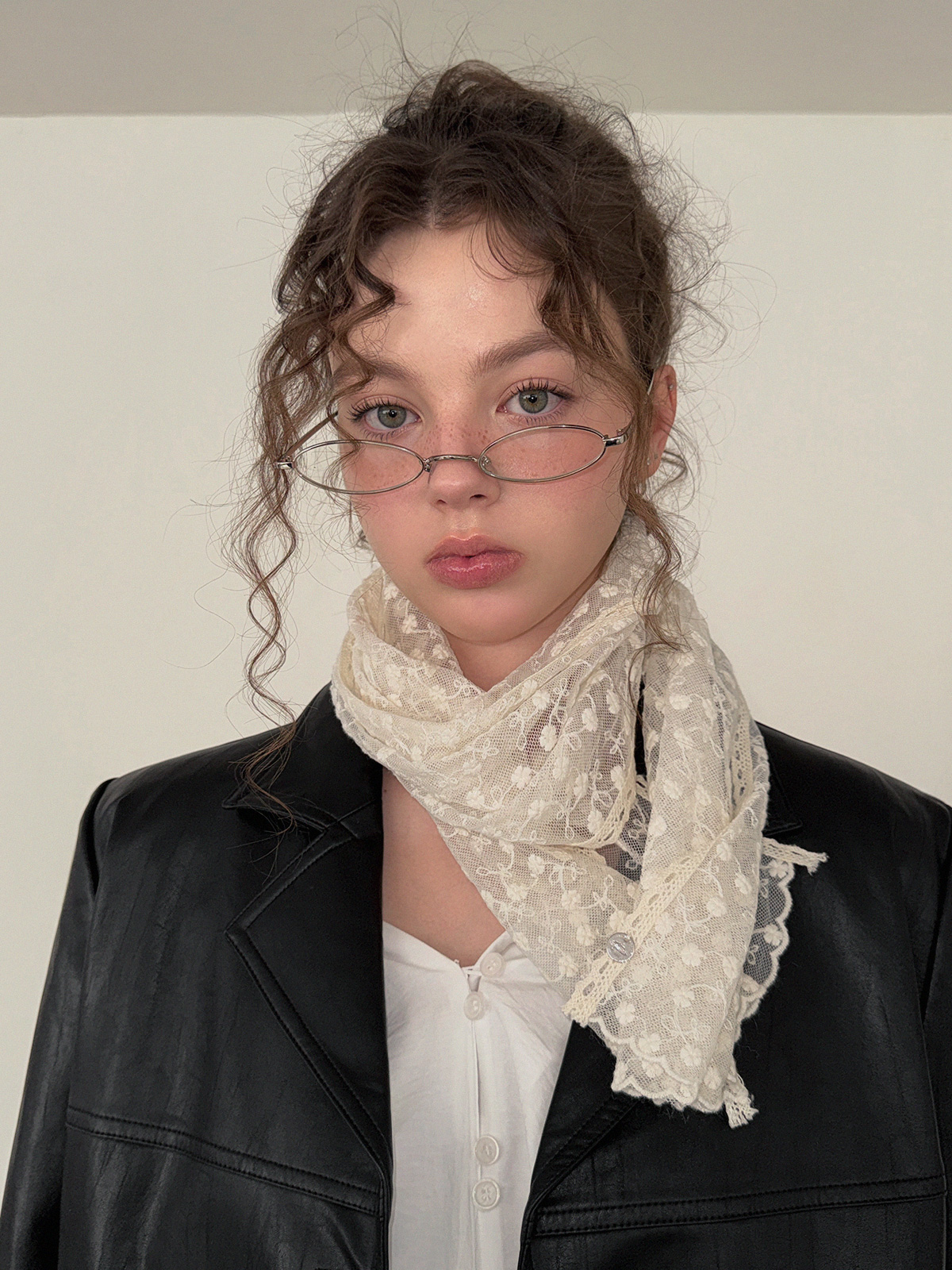 르벨 시스루 카라 골지 긴팔 티셔츠
