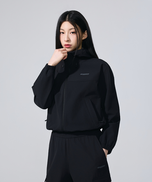 여성 스트레치 우븐 트레이닝 크롭 후드 자켓 (BLACK)
