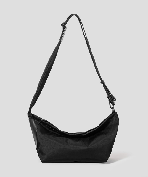 다양한 무드를 연출할 수 있는 스몰 사이즈의 나일론 크로스백입니다. 미니멀한 디자인에 독특한 구조적 형태를 살려 단순하지만 존재감 있는 실루엣을 완성했습니다. 크로스백뿐만 아니라 숄더백, 슬링백 등 다양한 방식으로 연출할 수 있습니다. 내부에 탈부착이 가능한 카드 케이스가 포함되어 있어 교통카드를 넣어 사용하거나, 목걸이 카드 홀더로도 활용이 가능합니다. 드러나지 않는 로고와 심플한 디자인으로, 계절과 연령에 관계없이 남녀 누구나 활용하기 좋은 아이템입니다.