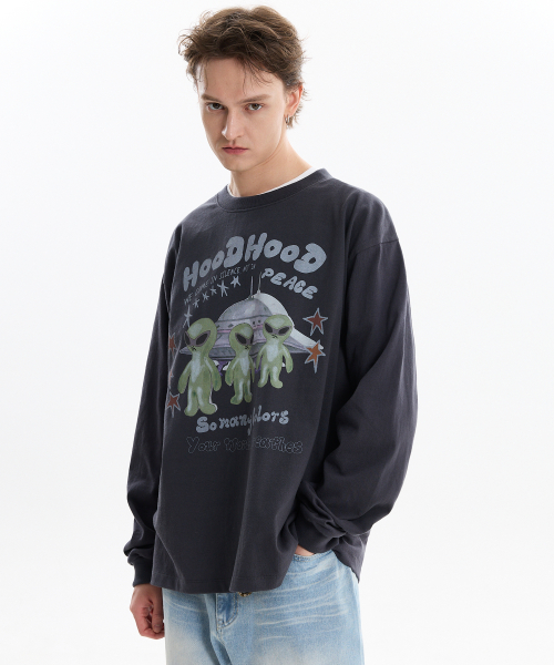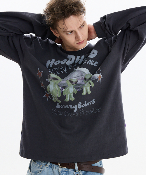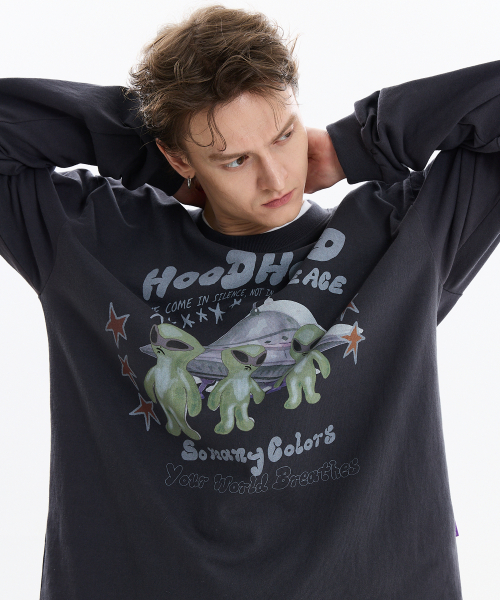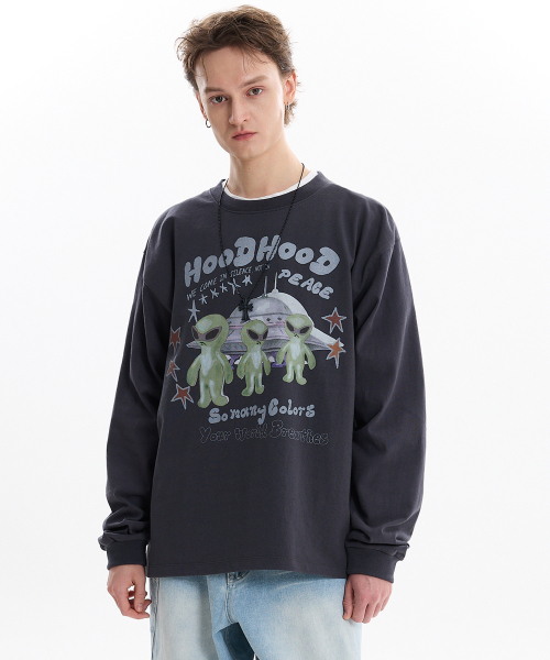 에일리언 피스 롱슬리브 티셔츠 차콜