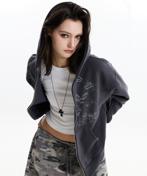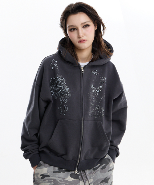 두들 에일리언 후드 집업 차콜
