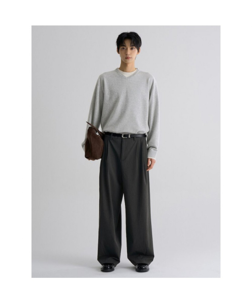은은한 핀스트라이프 패턴이 있는 TR원단으로 제작한 와이드 슬랙스입니다. 핀턱이 있어 넉넉하고 풍성한 실루엣입니다.