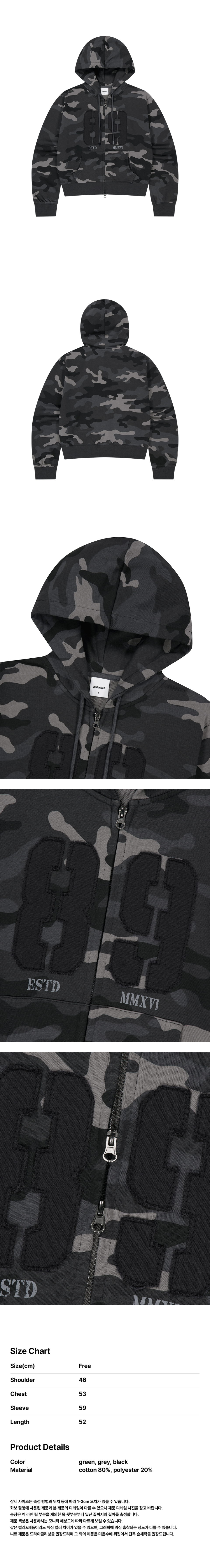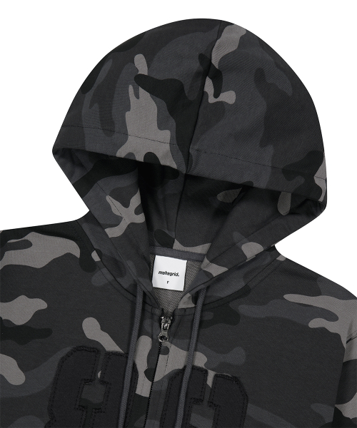 CAMO APPLIQUE CROP ZIP UP HOODIE BLACK(MG2FFFM493A)