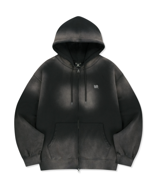 SPRAYED TAG HOOD ZIP UP - BLACK