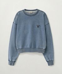 (W) 데님 라이크 워시드 크롭 스웨트셔츠 블루