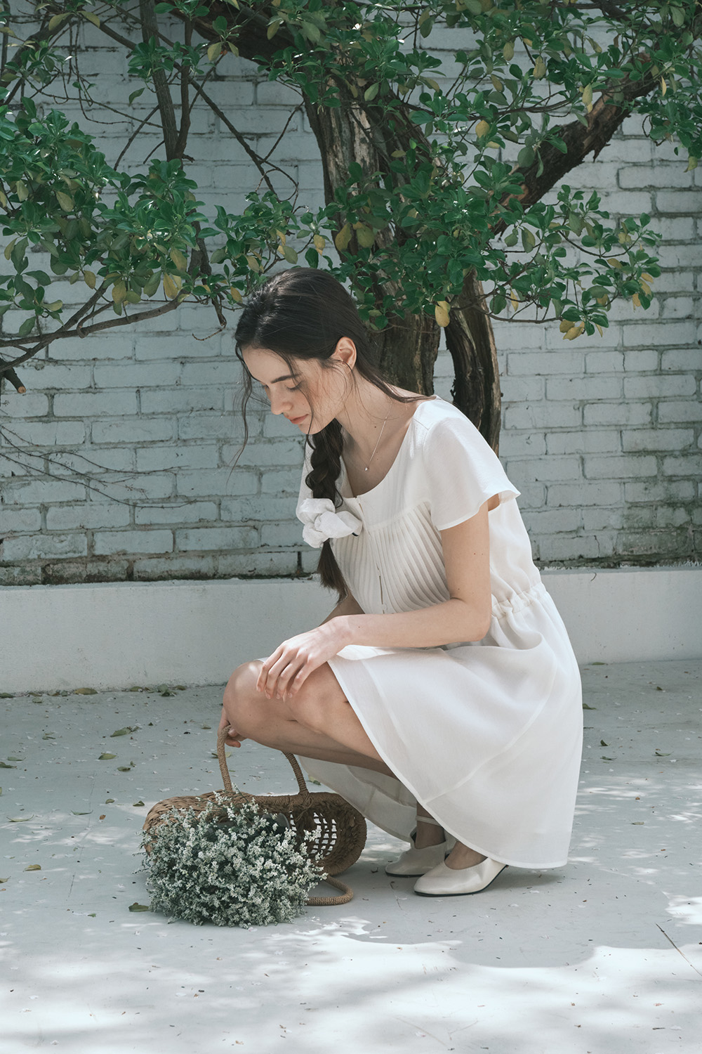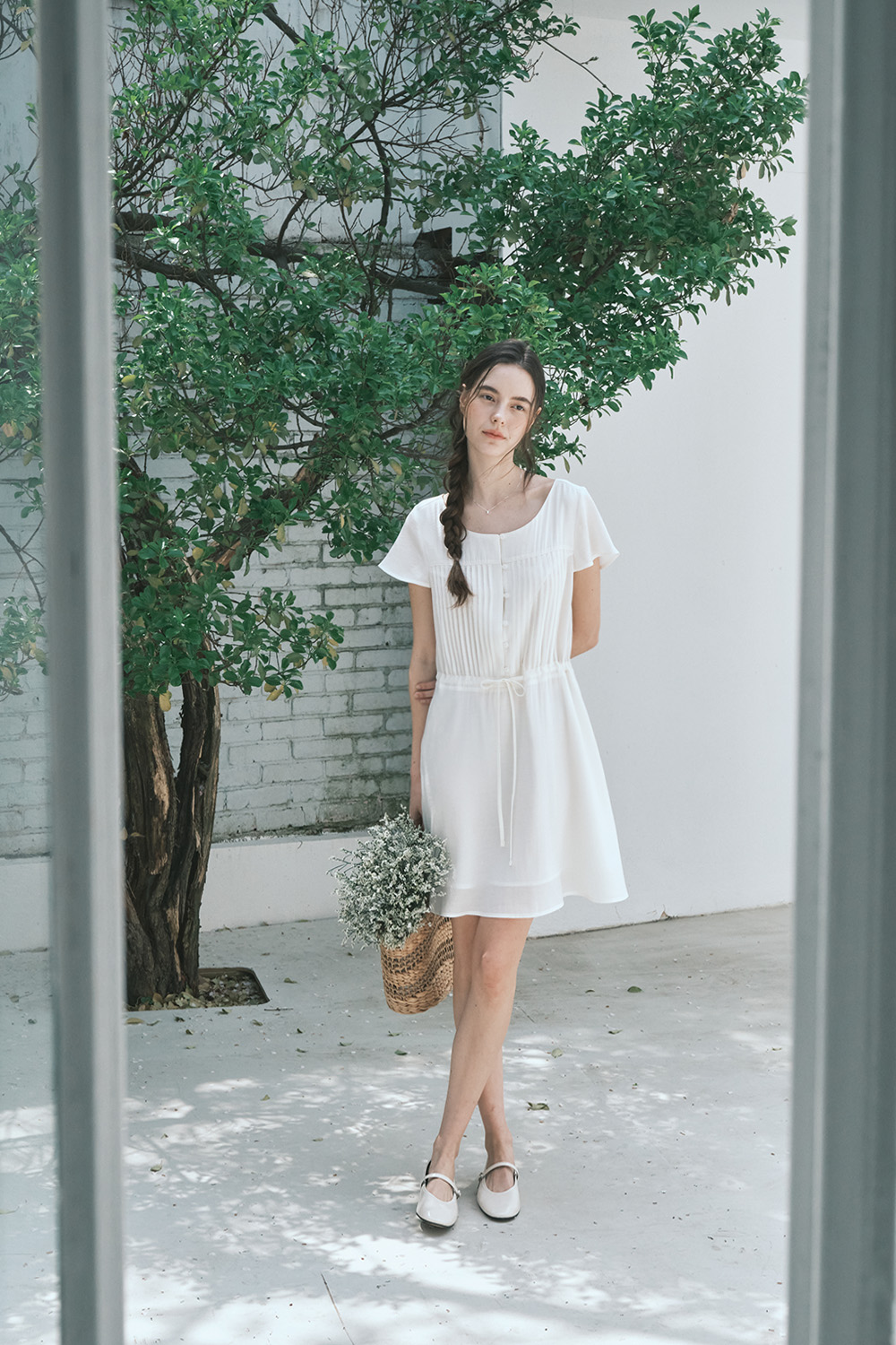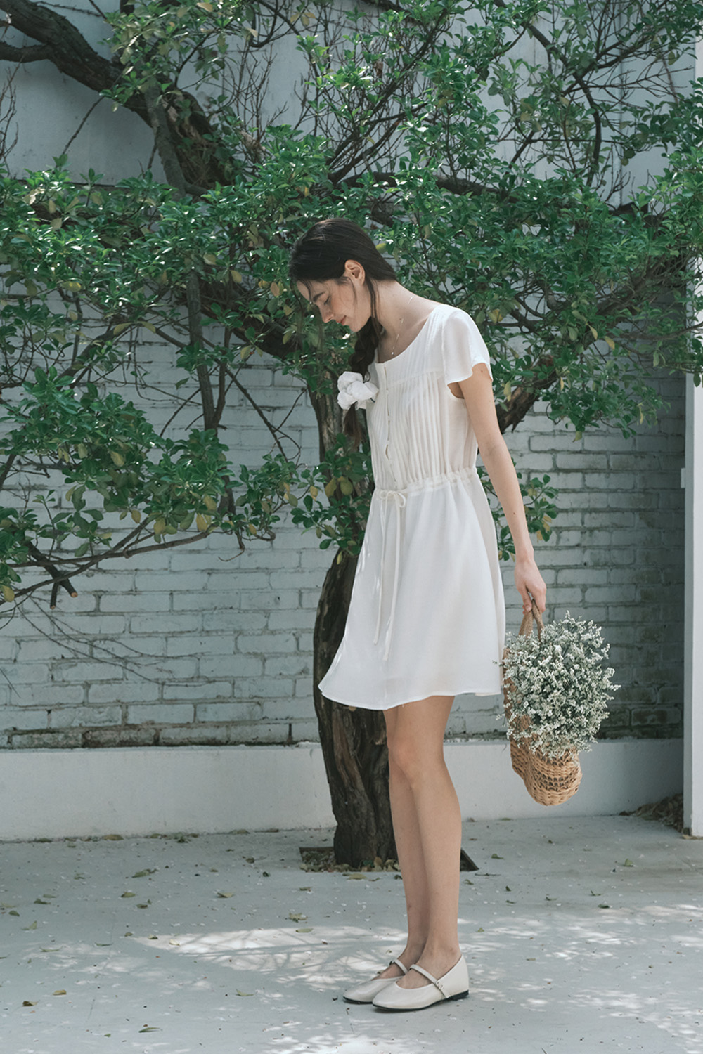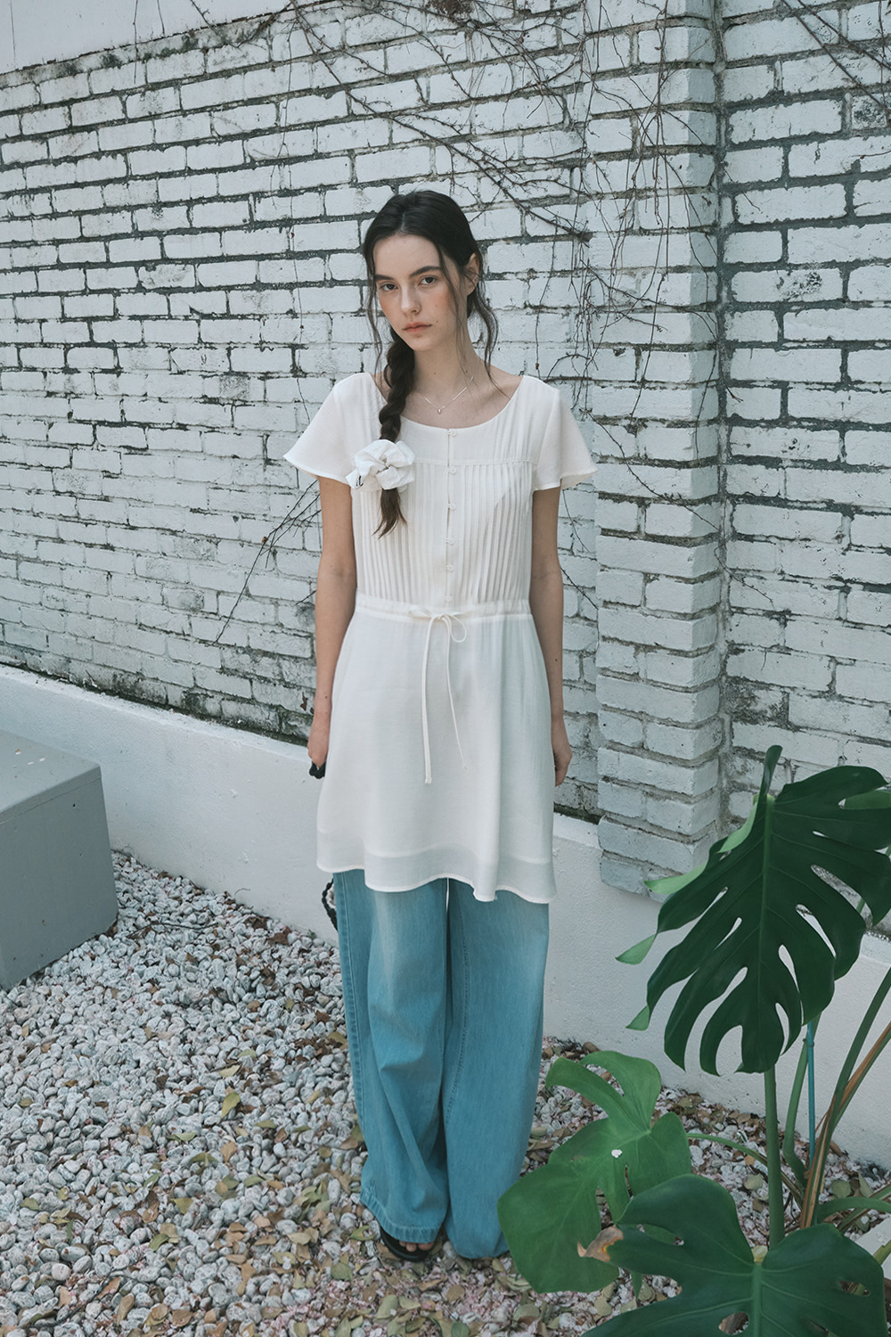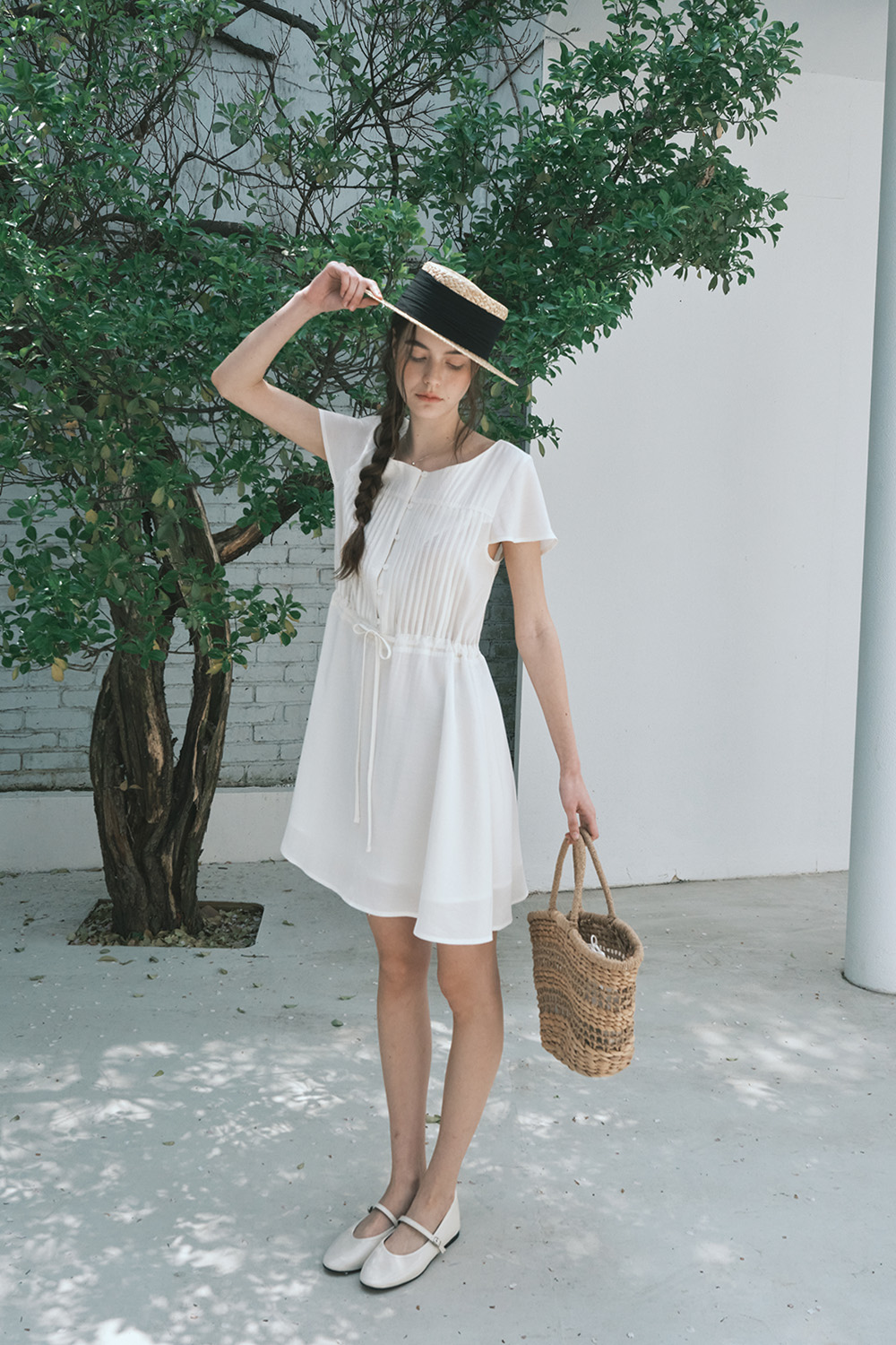 핀턱 보호 드레스_크림