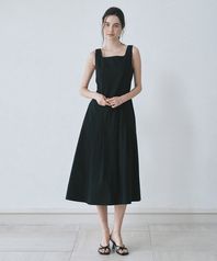 플리티드 슬리브리스 드레스_블랙