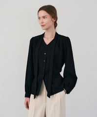 셔링 타이 블라우스_블랙
